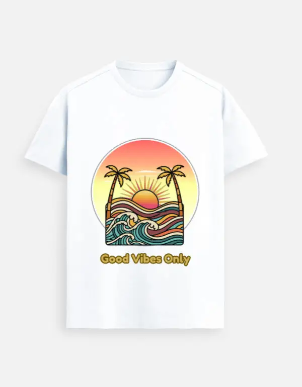 Step into chill mode with this Good Vibes Only tee β your everyday reminder to keep it positive and stylish. Featuring a retro sunset, ocean waves, and palm trees, this design is all about carefree energy and beach vibes. Whether youβre lounging, traveling, or just making a statement, this tee sets the mood.